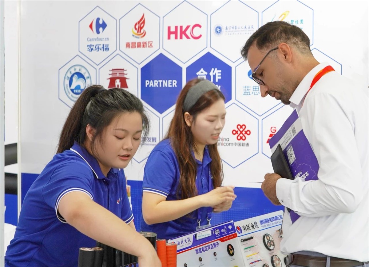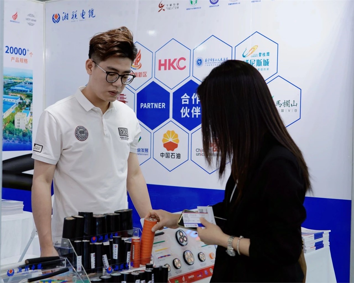 在展會(huì)現(xiàn)場(chǎng),湘聯(lián)電纜圍繞光伏發(fā)電、新能源汽車(chē)、重型裝備等發(fā)展應(yīng)用場(chǎng)景,與國(guó)內(nèi)外參展觀眾就電線電纜的解決方案展開(kāi)深入溝通與交流,生動(dòng)呈現(xiàn)了公司產(chǎn)品在建筑工程、能源、電力等領(lǐng)域的廣泛應(yīng)用,贏得了廣泛關(guān)注。